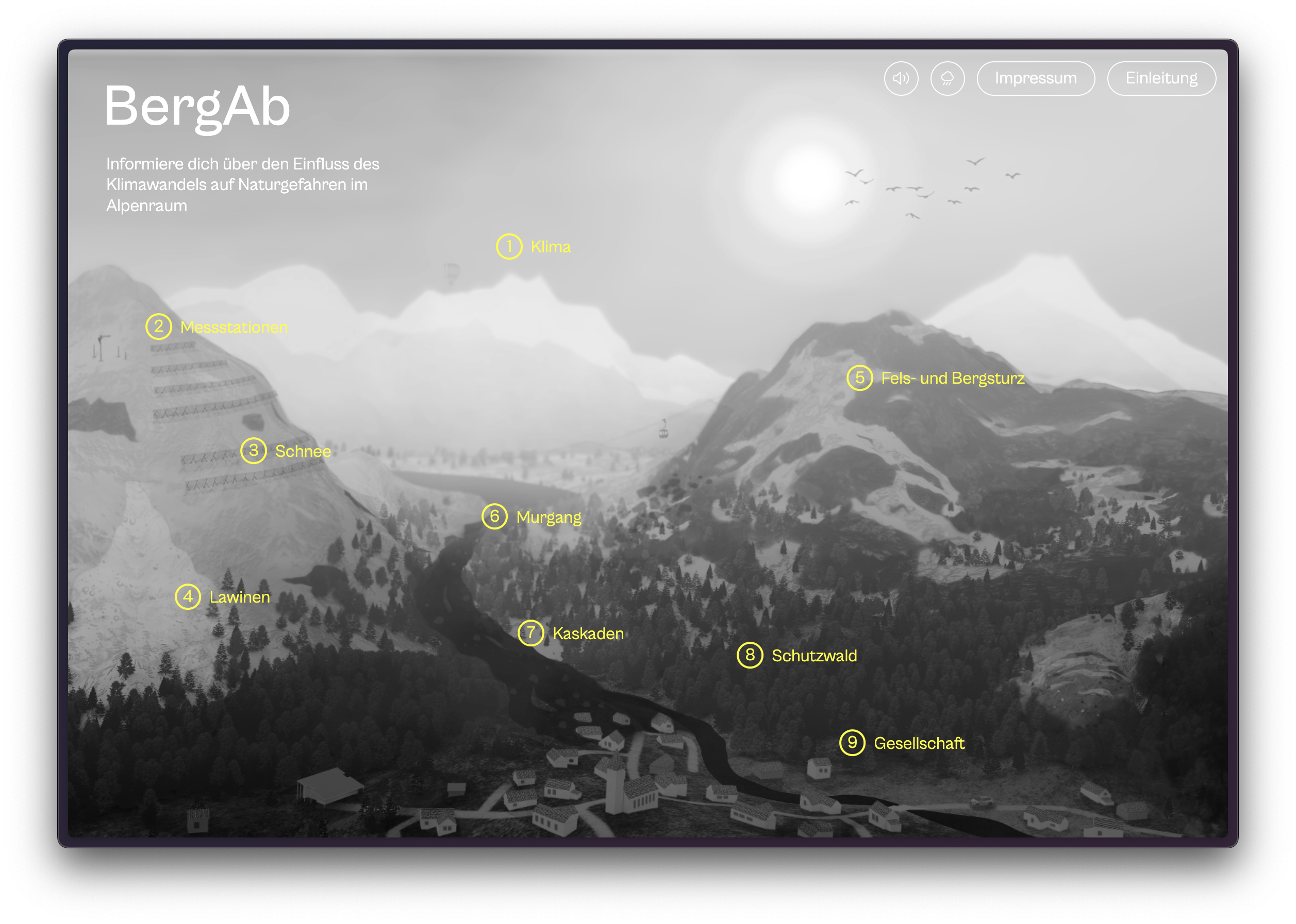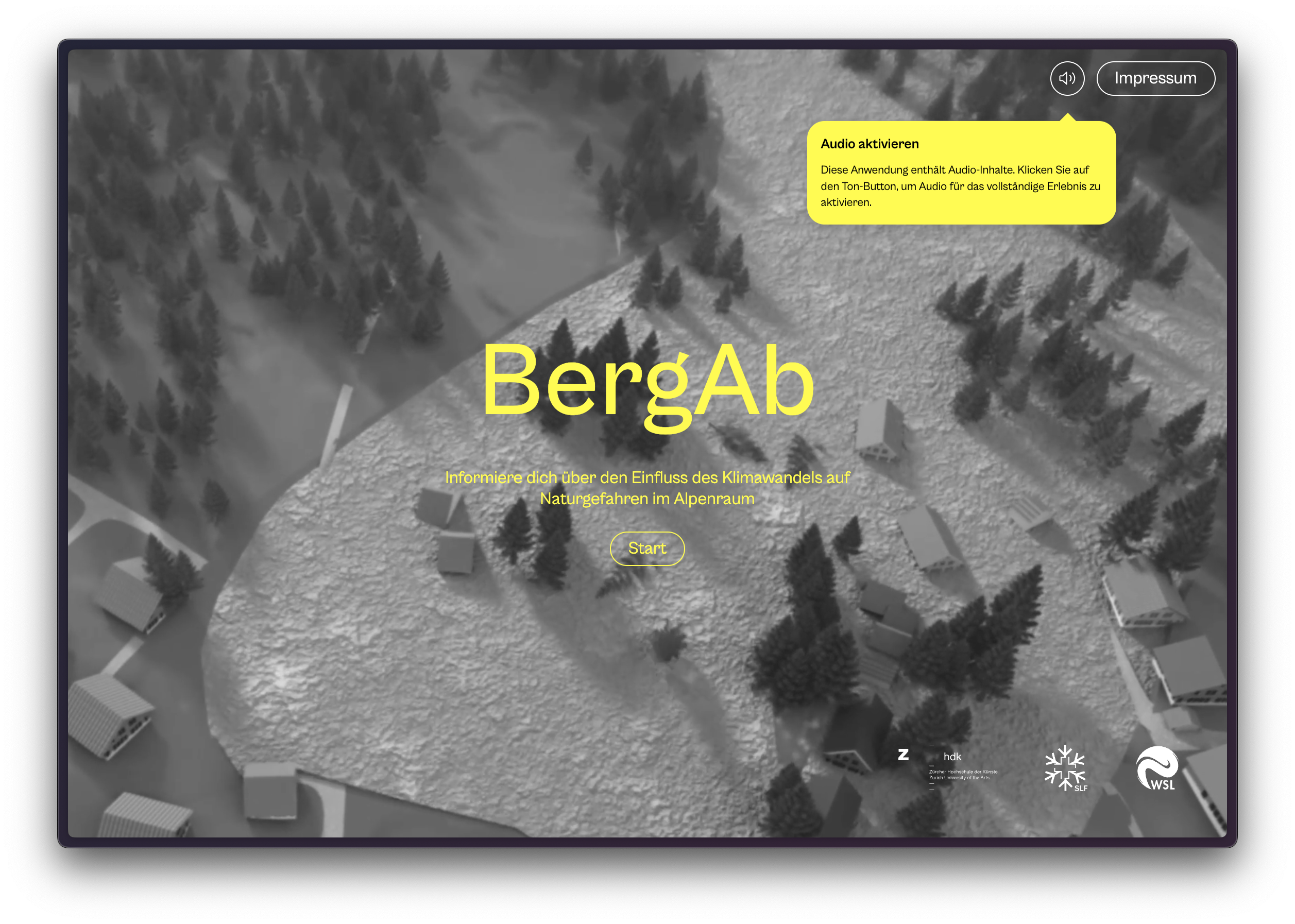 BergAb is an interactive storytelling tool developed by Knowledge Visualization in collaboration with researchers from the WSL Institute for Snow and Avalanche Research (SLF). We created the website, featuring an animated navigation and a multimedia storytelling format that transforms complex research on snow and avalanches into an accessible and engaging digital experience. The project was realized in collaboration with the Knowledge Visualization program at the Zurich University of the Arts (ZHdK) and the SLF.